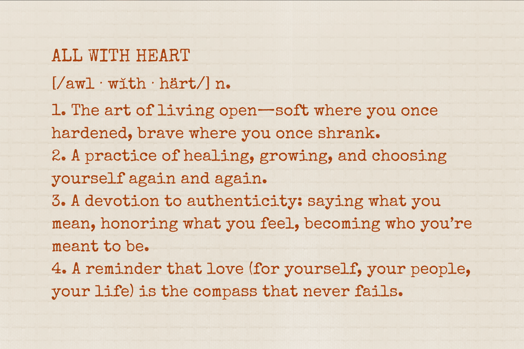 At its core, All With Heart is an invitation: to live more honestly, create more freely, and choose yourself with courage and compassion.